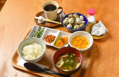 うずらの生卵がかけ放題で楽しめる、一番人気のセットです。