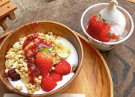 季節のフルーツソースをトッピングすると、さらに贅沢な気分になれますね。」