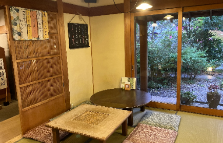 • 空間の魅力:お庭が見える古民家風の落ち着いた店内。